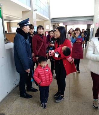 2月25日(正月初十)中午1點,閬中客運中心旅客熙熙攘攘、人來人往、十分繁忙,進(jìn)站旅客忙著購票、安檢、檢票乘車。突然,在行包安檢處,一個小男孩哭著找媽媽,急得不行。 安檢工作人員蔡爽、劉浩宇和胡家偉見狀,立即將小男孩帶到值班室。一邊安慰小男孩,給小男孩端來開水,穩(wěn)定情緒;一邊仔細(xì)詢問小男孩姓名、家長手機號碼等信息。由于小男孩比較緊張,所問信息一個都答不上來。“小男孩的家長肯定非常著急,必須盡快幫助找到他的家長。”劉浩宇見此情形說道,并隨即向安全科長姚波進(jìn)行了報告。姚波了解情況后馬上會同客運科通過語音廣播和候車廳電子顯示屏將小男孩尋找媽媽的事情進(jìn)行滾動播出。 十五分鐘后,一手抱小孩的女旅客急匆匆地趕到行包安檢處,小男孩馬上迎上去喊“媽媽、媽媽!”在看到自己走散的孩子后,這位女旅客激動地對車站工作人員說:“謝謝你們,謝謝你們,真是把我急死了!”看到走散的母子團聚,客運中心的工作人員臉上露出了開心的微笑。 (姚波)