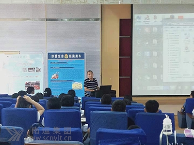 最后,南充技師學(xué)院的老師帶領(lǐng)學(xué)生們來到教室外,參觀了市運(yùn)管局和南運(yùn)集團(tuán)精心制作的宣傳展板。南運(yùn)集團(tuán)工作人員向師生們發(fā)放了印有南運(yùn)集團(tuán)客運(yùn)業(yè)務(wù)簡(jiǎn)介的宣傳資料,送上了帶有“南運(yùn)出行”微信公眾號(hào)二維碼和乘車指南的精美小禮品,并引導(dǎo)同學(xué)們掃碼關(guān)注“南運(yùn)集團(tuán)”和“南運(yùn)出行”微信公眾號(hào)。 此次活動(dòng),得到南充技師學(xué)院的大力支持,校方相關(guān)領(lǐng)導(dǎo)表示,學(xué)生的安全出行事關(guān)重大,這次普法宣傳教育活動(dòng)起到了良好的宣傳效果,希望今后能夠進(jìn)一步加強(qiáng)合作,共同為廣大師生提供安全、舒適、便捷的出行服務(wù)。 (營(yíng)運(yùn)處)