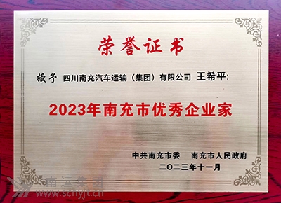 南運(yùn)集團(tuán)黨委書記、董事長、總經(jīng)理王希平 榮獲“2023年南充市優(yōu)秀企業(yè)家”稱號