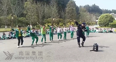 蓬安分公司客運(yùn)科副科長張偉帶領(lǐng)同學(xué)們跳《科目三》舞蹈