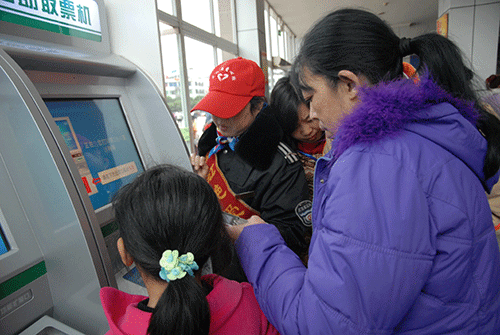 雖然車(chē)站在市轄三區(qū)和郵政網(wǎng)點(diǎn)設(shè)置了50個(gè)站外售票點(diǎn),但售票廳9個(gè)售票窗口一直排著購(gòu)票的旅客隊(duì)伍。車(chē)站臨時(shí)增加了1個(gè)出售成都和1個(gè)出售廣東、深圳、汕頭的售票車(chē)處。車(chē)站自助取票機(jī)由原來(lái)的4臺(tái)增設(shè)為6臺(tái),旁邊張貼著印有二維碼、支付寶等條目標(biāo)的“南充客運(yùn)站官方網(wǎng)站”,在四川汽車(chē)票務(wù)網(wǎng)兩名工作人員和1名“小紅帽”站務(wù)人員的引導(dǎo)下,讓旅客通過(guò)手機(jī)掃二維碼購(gòu)買(mǎi)車(chē)票。一名去宜賓的年輕旅客,拿出手機(jī),輕輕掃了一掃二維碼,便成功地取到了由南充去宜賓的汽車(chē)票,他高興地說(shuō):“互聯(lián)網(wǎng)+掃二維碼,快捷地就買(mǎi)了車(chē)票,不用排隊(duì)了,真方便。”售票大廳里排隊(duì)購(gòu)票的秩序井然,但沒(méi)有看見(jiàn)售票廳象往年那樣排隊(duì)購(gòu)票的隊(duì)伍排到售票廳外面的現(xiàn)象了。