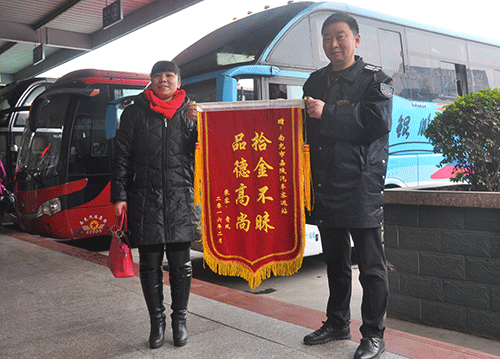 一句“謝謝”不足以表達(dá)南充市民青鳳對(duì)南充汽車客運(yùn)站工作人員的感謝,一句“這是我們應(yīng)該做的”詮釋了南充汽車客運(yùn)站工作人員踐行“質(zhì)量第一、旅客至上”的服務(wù)宗旨。2016年2月21日上午,在南充汽車客運(yùn)站發(fā)班站臺(tái)上,青女士將寫有“拾金不昧、品德高尚”的錦旗送到車站服務(wù)質(zhì)量管理科科長(zhǎng)王洪手中,感謝車站培養(yǎng)出來(lái)的優(yōu)秀員工,感謝駕駛員不被金錢所誘惑拾金不昧的高尚品格,再次為社會(huì)傳遞了正能量。