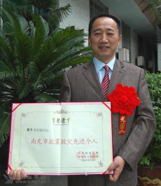 圖為旅游分公司駕駛員賀志強(qiáng)被市委、市政府授予“南充市抗震救災(zāi)先進(jìn)個(gè)人”稱號(hào)