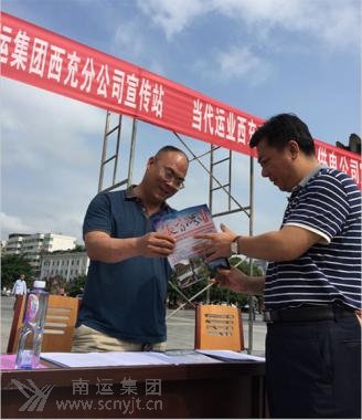 西充分公司安全第二責(zé)任人馮興晏為 西充縣副縣長楊春林發(fā)放宣傳資料