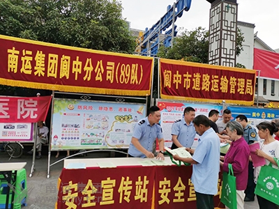 今年6月是全國(guó)第十八個(gè)“安全生產(chǎn)月”,按照省、市行業(yè)管理部門和集團(tuán)公司有關(guān)文件和會(huì)議精神,結(jié)合實(shí)際,閬中分公司深入學(xué)習(xí)廣泛宣傳習(xí)近平總書記關(guān)于安全生產(chǎn)的重要論述、《中華人民共和國(guó)安全生產(chǎn)法》、《中共中央國(guó)務(wù)院關(guān)于推進(jìn)安全生產(chǎn)領(lǐng)域改革發(fā)展的意見》、《地方黨政領(lǐng)導(dǎo)干部安全生產(chǎn)責(zé)任制規(guī)定》、《安全生產(chǎn)事故應(yīng)急條例》等法律法規(guī)知識(shí)。 6月14日,閬中分公司在閬中市人民廣場(chǎng)舉行了安全生產(chǎn)宣傳咨詢活動(dòng),向過(guò)往行人等發(fā)放安全生產(chǎn)法律法規(guī)和應(yīng)急科普知識(shí)、安全常識(shí)宣傳單500余份,懸掛安全標(biāo)語(yǔ)3幅,制作安全警示展板4版、掛圖12幅,播放《警鐘》生產(chǎn)安全事故典型案例盤點(diǎn)2019版等安全警示視頻,開展了富有實(shí)效的宣傳教育活動(dòng),引導(dǎo)廣大群眾積極參與,以“防風(fēng)險(xiǎn)、除隱患、遏事故”為主題,結(jié)合道路運(yùn)輸行業(yè)安全生產(chǎn)工作實(shí)際,大力宣貫2019年交通運(yùn)輸安全生產(chǎn)工作的總體要求,進(jìn)一步增強(qiáng)道路運(yùn)輸行業(yè)安全生產(chǎn)紅線意識(shí)和底線思維,推動(dòng)企業(yè)全面落實(shí)安全生產(chǎn)主體責(zé)任,提升全民安全素質(zhì),提高防災(zāi)減災(zāi)救災(zāi)能力,防范化解重大風(fēng)險(xiǎn)、及時(shí)消除安全隱患、有效防范重特大生產(chǎn)安全事故,促進(jìn)安全生產(chǎn)秩序持續(xù)穩(wěn)定好轉(zhuǎn),為慶祝新中國(guó)成立70周年?duì)I造良好的安全生產(chǎn)環(huán)境。 開展安全宣傳咨詢當(dāng)天,閬中市委常委、市政府黨組副書記、副市長(zhǎng)楊洪江,市政府黨組成員、副市長(zhǎng)、公安局局長(zhǎng)祝隆平視察閬中市安全生產(chǎn)月活動(dòng)安全咨詢宣傳工作情況時(shí),要求南運(yùn)集團(tuán)閬中分公司要落實(shí)道路安全生產(chǎn)主體責(zé)任,強(qiáng)化駕駛員安全管理和教育培訓(xùn),加強(qiáng)車輛技術(shù)管理,強(qiáng)化夏季和汛期安全生產(chǎn)工作,確保道路旅客運(yùn)輸安全有序、平穩(wěn)發(fā)展。 (蘇城)