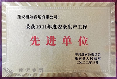 蓬安相如客運(yùn)有限公司榮獲 “2021年度安全生產(chǎn)工作先進(jìn)單位”稱號(hào)