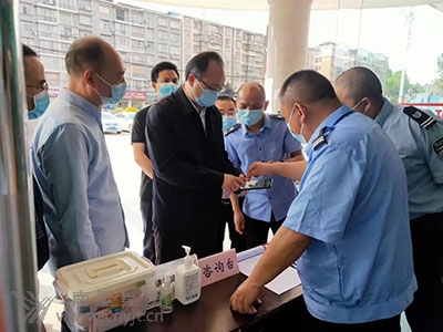 西充縣縣委書記張光全(左四)深入西充客運(yùn)中心檢查“五一”節(jié)前疫情防控工作。