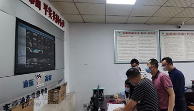 市交通運(yùn)輸局副局長馬七林(左二)檢查高速客運(yùn)分公司GPS監(jiān)控管理