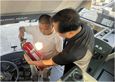 高速客運(yùn)分公司安全生產(chǎn)第一責(zé)任人岳軍帶隊(duì)檢查車輛發(fā)動(dòng)機(jī)及隨車滅火器
