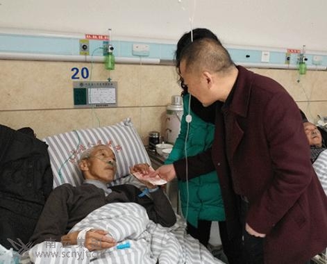 儀隴分公司黨總支副書記、工會主席蔣小林在醫(yī)院看望慰問住院退休職工