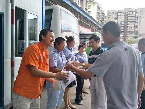 7月19日下午,烈日炎炎,高坪分公司黨總支書記、工會主席林仕先帶領(lǐng)相關(guān)部門負(fù)責(zé)人,攜帶冰糖、藿香正氣液、風(fēng)油精、毛巾等防暑降溫物品,為高坪車站堅(jiān)守在烈日酷暑下的一線站務(wù)人員送清涼。林書記說,他代表集團(tuán)公司慰問一線員工,希望員工們發(fā)揚(yáng)戰(zhàn)高溫、斗酷暑的奉獻(xiàn)精神,抓好暑運(yùn)、汛期的安全生產(chǎn)工作,同時(shí)要注意高溫防暑,保重自己的身體。 (任興)