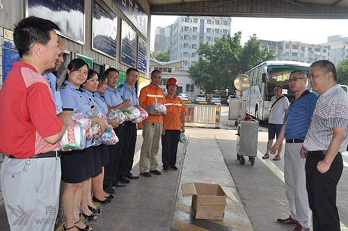 進入三伏天,氣溫不斷攀升,連日酷暑,一線員工們揮汗如雨,但仍然堅守崗位,兢兢業(yè)業(yè),為保障旅客的安全運輸而辛勤地工作。7月20日上午,受集團公司黨委書記、董事長、總經(jīng)理王希平的委托,集團公司黨委副書記、工會主席胡仕杰帶領集團公司工會工作人員來到精誠汽車維修分公司、南充汽車客運站、高速客運分公司看望慰問一線員工,親手給一線員工送上了防暑降溫物品,讓一線員工在酷暑中感受到絲絲清涼和關懷,并叮囑大家在夏季高溫工作環(huán)境下一定要注意自我調節(jié),做好防暑降溫工作,防止高溫中暑,切實搞好暑運安全服務工作。 據(jù)悉,集團公司工會還開支47700元,委托各基層單位工會為783名一線員工送去了清涼物品。一線員工們深切地感受到了集團公司領導的親切關懷,紛紛表示一定戰(zhàn)勝高溫,堅守崗位,努力工作,為運輸安全、優(yōu)質服務做出自己應有的貢獻。 (文小瓊 王洪)