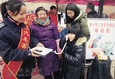 春運(yùn)以來,南充汽車客運(yùn)站按照省市交通運(yùn)輸主管部門和道路運(yùn)輸管理機(jī)構(gòu)的要求,認(rèn)真組織開展“情滿旅途”活動(dòng)。始終堅(jiān)持以倡導(dǎo)“富強(qiáng)、民主、文明、和諧、自由、平等、公正、法治、愛國、敬業(yè)、誠信、友善”二十四字社會(huì)主義核心價(jià)值觀為主線,以為農(nóng)民工返鄉(xiāng)、返崗做好服務(wù)保障為重點(diǎn),以組織小紅帽、志愿者、愛心班三支隊(duì)伍為依托,開展形式多樣、豐富多彩的“情滿旅途”服務(wù)活動(dòng),傾情打造“溫馨港灣”,努力贏得廣大旅客的贊譽(yù)和社會(huì)好評(píng)。 成立領(lǐng)導(dǎo)機(jī)構(gòu),強(qiáng)化人員保障。為使活動(dòng)有組織、有計(jì)劃、有針對(duì)性開展,車站成立“情滿旅途”活動(dòng)領(lǐng)導(dǎo)小組。三支隊(duì)伍就是小紅帽服務(wù)隊(duì)、志愿者服務(wù)隊(duì)、匡紅艷愛心班服務(wù)隊(duì)。小紅帽是道路運(yùn)輸行業(yè)義務(wù)服務(wù)的標(biāo)志和品牌。自建立以來,得到了社會(huì)各界的廣泛認(rèn)可,成為了行業(yè)服務(wù)的響亮名片;匡紅艷愛心班是車站的一個(gè)服務(wù)班組,包含售票崗、引導(dǎo)崗、咨詢崗。是以該班首任班長、全國五一勞動(dòng)獎(jiǎng)?wù)芦@得者匡紅艷的名字命名的。多年來,她們堅(jiān)持開展學(xué)雷鋒、樹新風(fēng)活動(dòng),視服務(wù)質(zhì)量為生命,創(chuàng)造了眾多工作業(yè)績,得到了社會(huì)各界的廣泛好評(píng),先后獲得南充市“三八紅旗集體”、全國總工會(huì)“全國五・一巾幗標(biāo)兵崗”、全國婦聯(lián)“全國巾幗建功先進(jìn)集體”、全國總工會(huì)“工人先鋒號(hào)”、“全國交通行業(yè)質(zhì)量信得過班組”、“全國質(zhì)量信得過班組”等榮譽(yù)。小紅帽服務(wù)隊(duì)成員有10名,志愿者服務(wù)隊(duì)成員有6名,匡紅艷愛心班服務(wù)隊(duì)成員有12名。他(她)們或佇立于服務(wù)崗位,或穿梭于服務(wù)線上,成為車站一道靚麗的風(fēng)景線。 抓好政企互動(dòng),增強(qiáng)公益效果。車站積極爭取市、區(qū)政府有關(guān)部門的支持,主動(dòng)銜接,抓好政企互動(dòng),共同開展形式多樣的服務(wù)保障活動(dòng),設(shè)立“返鄉(xiāng)農(nóng)民工服務(wù)點(diǎn)”、“青年志愿者服務(wù)站”、“文明新風(fēng)宣傳站”等。在站內(nèi)建立愛心驛站,開辟農(nóng)民工售票窗口、農(nóng)民工服務(wù)臺(tái)、農(nóng)民工進(jìn)站綠色通道,同時(shí),設(shè)置軍人優(yōu)先標(biāo)志,提供老弱病殘?jiān)刑貏e服務(wù)等等,讓廣大旅客享受到更方便、快捷、安全、舒適的服務(wù)。 抓好時(shí)間節(jié)點(diǎn),做實(shí)服務(wù)舉措。節(jié)前以學(xué)生回家、農(nóng)民工返鄉(xiāng)客流為主,節(jié)日期間,以在外打拼或因公事無法及時(shí)回家的旅客為主,節(jié)后主要是走上工作崗位和學(xué)校的返程旅客。針對(duì)客流特點(diǎn),車站在節(jié)前組織送茶水、開展宣傳等活動(dòng),做好旅客接待、轉(zhuǎn)乘和站務(wù)服務(wù)保障工作。除在候車廳增設(shè)一處固定供水點(diǎn)外,還組織志愿者流動(dòng)送水。在站前廣場(chǎng)設(shè)置報(bào)平安電話,在進(jìn)站大廳、候車廳、售票廳增設(shè)宣傳點(diǎn),主要宣傳社會(huì)主義核心價(jià)值觀、旅途安全常識(shí)、站務(wù)服務(wù)功能、流程及黨和國家相關(guān)方針政策。正月初一,匡紅艷愛心班為因各種原因沒回到家的旅客贈(zèng)送醪糟湯元,讓大家感受節(jié)日的氣氛,找到家的感覺。初二至初六,是每年旅客運(yùn)輸?shù)淖罡叻,組織小紅帽和各界志愿者,在站內(nèi)外開展“春運(yùn)伴你行、旅途更暢通”活動(dòng),在備好急救箱、針線包、行李車、殘疾車、雨傘的同時(shí),大力開展為旅客“做一件事、解一次難、引一段路”專題活動(dòng)。另外,組織匡紅艷愛心班成員,堅(jiān)持每天為旅客送茶水,初六為旅客送水餃。濃濃鄉(xiāng)情讓廣大旅客增添了一絲絲鄉(xiāng)愁。 (李曉光)