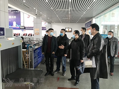 市交通運(yùn)輸局副調(diào)研員尹毅(右一)、市運(yùn)管局副局長廖洪堯(右二)驗(yàn)收南充汽車客運(yùn)站反恐怖防范試點(diǎn)工程。