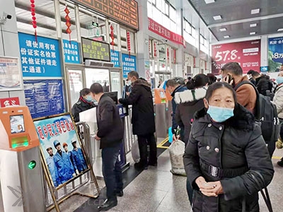 與以往熙熙攘攘、摩肩接踵的景象不同,空曠的售票大廳里,返崗的旅客掃碼、測溫、保持間距,喧囂不再,但一切井然有序。3個售票窗口有三三兩兩的旅客在購票。車站網(wǎng)上購票的旅客已增加到60%。在1名“小紅帽”站務(wù)人員的引導(dǎo)下,旅客們在10臺自助(售)取票機(jī)前便捷的。ㄙ彛┢。另1個廣東、深圳、汕頭、福建、溫州的售票窗口基本上無人問津。為了方便農(nóng)民工回家返崗,車站專門設(shè)置了農(nóng)民工服務(wù)臺、農(nóng)民工優(yōu)先售票窗口和農(nóng)民工檢票進(jìn)站綠色通道,車站工作人員熱情為農(nóng)民工提供指路、購票、咨詢、搬運行李、維護(hù)秩序等服務(wù),深受農(nóng)民工歡迎。