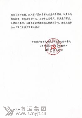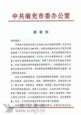 中國(guó)共產(chǎn)黨南充市第七次代表大會(huì)秘書(shū)處給南運(yùn)集團(tuán)致《感謝信》