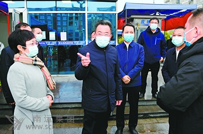 市委書記劉強(qiáng)(中)在南運(yùn)集團(tuán)營(yíng)山汽車客運(yùn)站檢查疫情防控工作。