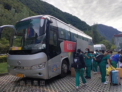 9月5日南運集團營山分公司緊急運送營山縣83名醫(yī)務人員前往阿壩州茂縣抗疫一線。