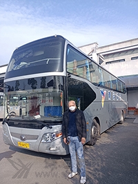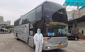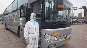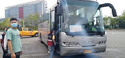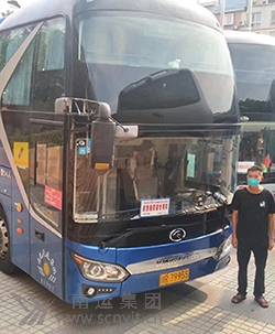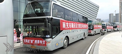 閬中分公司大巴運送醫(yī)務人員馳援南充戰(zhàn)疫。