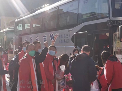 出征中,南運集團大巴車頭張貼“南充人民心系廣安 攜手奮戰(zhàn)抗擊疫情”的醒目橫幅,駕駛員身穿防護服,手拉“南運集團共產(chǎn)黨員先鋒隊”的大紅旗幟,舉行抗疫宣誓。我司黨員先鋒隊奔赴鄰水抗疫一線執(zhí)行運輸保障任務的英勇壯舉,5月18日《四川觀察》以“21臺南運集團的大巴出發(fā)馳援廣安鄰水主要執(zhí)行轉(zhuǎn)運隔離人員的任務”為題進行了視頻報道;5月21日《人民網(wǎng)》在“為疫情防控注入交通力量……”一文中,報道了5月20日第二批手拉“南運集團共產(chǎn)黨員先鋒隊”大紅旗幟的駕駛員,抵達廣安鄰水縣抗擊疫情的圖片;5月24日《今日頭條》以“南充馳援鄰水 你們辛苦了、鄰水人民感謝你們”為題,播放了歡送“南運集團”大巴有序離鄰返南的清晰流暢的視頻,均在全社會引發(fā)了熱烈反響。 5.微信傳情 英雄凱旋 5月24日南運集團赴鄰抗疫人員即將返南時,我司部分員工自發(fā)組織在南運集團汽車駕駛培訓基地,整齊列隊,手拉著“熱烈歡迎赴鄰英雄凱旋歸來!”和“向逆行最美駕駛員致敬!”的紅底白字的巨大橫幅,夾道歡迎援鄰戰(zhàn)疫勇士凱旋歸來。王董事長在當日下午同員工們一起,在路口堅定地站著等待整整4個小時,并用手機親自給“南運集團赴鄰水抗疫參戰(zhàn)勇士們”寫下熱情洋溢的《歡迎詞》,領(lǐng)隊龐林隨即將《歡迎詞》轉(zhuǎn)到南運人微信工作群中,立即被我司所屬的15個基層黨組織的微信工作群轉(zhuǎn)發(fā)截屏,引起員工強烈共鳴。在全司1600余名黨員干部員工和2500余名駕駛員微信中,掀起熱烈歡迎南運勇士平安歸來的濃厚氛圍。王董事長歡迎詞中寫道: “南運集團赴鄰水抗疫參戰(zhàn)勇士們: 你們攜帶著700萬南充人民深情厚意,肩負著市委市政府、南充交通運輸局和集團公司的重托,舍小家為大家,義無反顧,逆向前行,高舉共產(chǎn)黨員先鋒隊大旗,奮勇沖向鄰水抗疫一線。經(jīng)過七晝夜的連續(xù)奮戰(zhàn),圓滿完成了廣安鄰水抗疫運輸保障任務,凱旋歸來,我代表集團公司黨委和董事會,向你們表示熱烈的歡迎和衷心的感謝! 返南后你們將按照疫情防控規(guī)定進行隔離觀察,這也是抗疫任務之一,希望你們服從管理,配合核檢,好好休息。家里有事告訴所在單位,我們負責處理好,請一切放心。 你們辛苦了!你們的行為是一場壯舉,己感動了無數(shù)人。你們是企業(yè)的功臣,是最美南運人!向你們致敬!祝好人一生平安!” 南運集團、南運旅游、南運高速的一長排豪華大巴猶如參戰(zhàn)歸家的鋼鐵長城,行至南運集團駕培考訓基地門口,看到王董事長、岳副總等領(lǐng)導親自前來迎接,心生激動,立即放緩車速,齊鳴喇叭,向集團公司領(lǐng)導致謝。在場員工們忙著用手機拍照、錄視頻,都想留住這一光榮而神圣的時刻! (二)南運集團共產(chǎn)黨員先鋒隊圓滿完成支援三區(qū)四縣抗疫應急運輸保障任務。