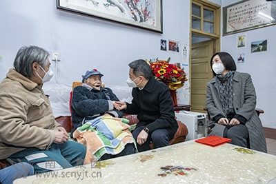 值此新春佳節(jié)來(lái)臨之際,1月16日下午,市委常委、市委組織部部長(zhǎng)王雙全,市委組織部副部長(zhǎng)、市委老干部局局長(zhǎng)許琪一行在南運(yùn)集團(tuán)黨委書(shū)記、董事長(zhǎng)、總經(jīng)理王希平的陪同下,登門看望慰問(wèn)了南充市目前唯一健在,108歲高齡的南運(yùn)集團(tuán)老紅軍曹守成,把黨和政府的關(guān)懷與溫暖送到曹老紅軍家中。 “曹老紅軍,新年好!我受朱家德書(shū)記的委托,今天特意來(lái)給您老人家拜年了,祝您及家人新春快樂(lè)!”一進(jìn)門,王雙全就親切地握著曹老的手,與曹老促膝而坐,拉家常、問(wèn)冷暖,詳細(xì)了解曹老的身體生活狀況和實(shí)際困難,認(rèn)真傾聽(tīng)曹老及家人的心聲,并代表省委、省政府和市委、市政府為曹老送上了誠(chéng)摯的新春祝福、慰問(wèn)金和鮮花。曹老臉上一直洋溢著開(kāi)心幸福的笑容。屋外雨雪紛紛,寒氣逼人,屋內(nèi)歡聲笑語(yǔ),其樂(lè)融融。 “感謝黨和政府對(duì)我們的親切關(guān)懷,感謝老干部局和南運(yùn)集團(tuán)的悉心照顧,老干局還派了專門的家庭醫(yī)生和社工上門服務(wù),我父親目前各項(xiàng)指標(biāo)正常,作息規(guī)律,有時(shí)候還要唱紅歌呢!辈芾霞t軍兒媳說(shuō)道?吹讲芾霞t軍在家人和市老干局、市交通運(yùn)輸局與南運(yùn)集團(tuán)的精心照顧下,雖已到茶壽之年但身子骨仍然硬朗,如今已是五世同堂、兒孫繞膝,王雙全十分高興。 王雙全強(qiáng)調(diào),曹老紅軍是我們黨的寶貴財(cái)富,照顧好曹老紅軍是一項(xiàng)光榮的政治責(zé)任,我們要永遠(yuǎn)銘記老紅軍的豐功偉績(jī),傳承和發(fā)揚(yáng)長(zhǎng)征精神,走好建設(shè)現(xiàn)代化南充新的趕考之路。并囑托曹老家人、相關(guān)部門和南運(yùn)集團(tuán)要一如既往地關(guān)心好、照顧好曹老,深入細(xì)致地做好各項(xiàng)服務(wù)保障工作,幫助解決曹老的實(shí)際困難,為曹老提供更加親情化、個(gè)性化、精準(zhǔn)化服務(wù),讓曹老紅軍安度晚年、頤養(yǎng)天年、益壽延年。 市委老干部局安置科科長(zhǎng)劉濤、服務(wù)管理科副科長(zhǎng)彭良全,集團(tuán)公司黨委副書(shū)記、工會(huì)主席鮮志強(qiáng)陪同參加慰問(wèn)。 (黨群辦)