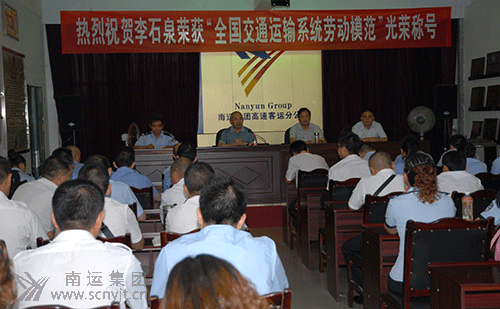 高速客運(yùn)分公司黨支部副書記侯進(jìn)主持會(huì)議,副經(jīng)理龐林宣讀了中華人民共和國(guó)人力資源和社會(huì)保障部、中華人民共和國(guó)交通運(yùn)輸部“關(guān)于交通運(yùn)輸系統(tǒng)勞動(dòng)模范”表彰決定?燔嚳瓦\(yùn)分公司駕駛員李石泉榮獲表彰。