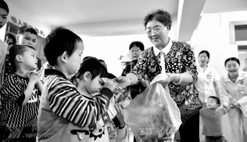 5月26日下午,南運(yùn)集團(tuán)“愛(ài)心婆婆”葉千秀帶著禮物,來(lái)到市兒童福利院,提前陪孩子們過(guò)“六一”。今年,是葉婆婆陪孩子們過(guò)的第十個(gè)兒童節(jié)。 “葉婆婆,謝謝你來(lái)看我們。”看到葉千秀,孩子們高興不已,圍在葉千秀的身邊,親切地向她問(wèn)好。“來(lái),孩子們,這是我給你們的節(jié)日禮物,祝你們節(jié)日快樂(lè)!比~千秀拿出餅干、糖果,一 一分發(fā)給孩子們。隨后,葉千秀又拿出2000元現(xiàn)金,交給福利院工作人員,叮囑工作人員給孩子們買(mǎi)點(diǎn)他們喜歡的玩具。 葉千秀是南運(yùn)集團(tuán)一名普通的退休老人,她先后幫助26名大學(xué)生完成學(xué)業(yè),還資助了1名高中生,兩名初中生。兒童康復(fù)中心的孩子需要幫助,她慷慨解囊;老年合唱團(tuán)沒(méi)活動(dòng)經(jīng)費(fèi),她伸出捐助之手。從2007年開(kāi)始,她每年都會(huì)到兒童福利院陪孩子們過(guò)節(jié)。16年來(lái),她已捐出58萬(wàn)元現(xiàn)金。 (摘自2016年5月27日《南充日?qǐng)?bào)》第六版 記者 陸待君)