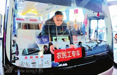 “看到車站專門給我們農(nóng)民工開專班車,心里暖融融的!1月12日上午,在南充汽車客運(yùn)站,返鄉(xiāng)農(nóng)民工黃厚成順利登上開往儀隴金城的大巴車后,樂呵呵地告訴記者。 2020年春運(yùn)已從1月10日拉開帷幕。1月12日上午,在南充汽車客運(yùn)站里,返鄉(xiāng)的旅客絡(luò)繹不絕,他們扛著大包小包,要么排隊(duì)購(gòu)票,要么進(jìn)站乘車,行色匆匆。在售票大廳,一個(gè)售票窗口張貼著“農(nóng)民工售票窗口”的醒目提示,一名志愿者正在為前來購(gòu)票的農(nóng)民工提供咨詢等服務(wù);在發(fā)車區(qū),部分客車擋風(fēng)玻璃前放著“農(nóng)民工專車”牌子(如圖),工作人員積極引導(dǎo)農(nóng)民工乘車返鄉(xiāng)。 南充汽車客運(yùn)站相關(guān)負(fù)責(zé)人告訴記者,春運(yùn)開始后,車站針對(duì)農(nóng)民工返鄉(xiāng)較為集中的蓬安,以及儀隴縣金城鎮(zhèn)、馬鞍鎮(zhèn)、大寅鎮(zhèn)等地,開通了農(nóng)民工專班大巴車,這些專班車實(shí)行坐滿即走,直接開到鎮(zhèn)上,大大方便了農(nóng)民工返鄉(xiāng)。 當(dāng)天,黃厚成坐上了前往儀隴金城的專班車。一直在成都務(wù)工的黃厚成,隨著春節(jié)的臨近,提前返鄉(xiāng)過年。車站為農(nóng)民工開通專班車這樣的暖心事,讓他直點(diǎn)贊。 (李奎 陳村銘) ——摘自《南充日?qǐng)?bào)》