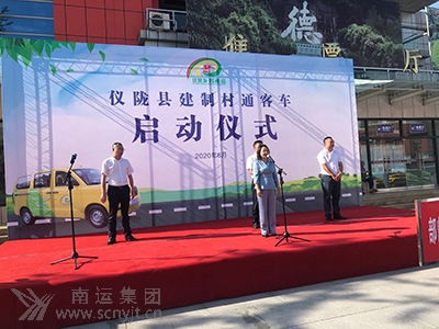 縣委常委、縣總工會主席樊莉君(中)宣布建制村通客運正式啟動。儀隴縣副縣長嚴清泉(中)、儀隴縣交通運輸局局長夏秉光(左一)、儀隴縣運管局局長李義(右一)參加啟動儀式。