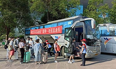 炎炎夏日里,三輛印有“南運(yùn)集團(tuán)”醒目大字,掛著《南充汽車客運(yùn)站校園直通車》鮮紅標(biāo)語的大巴車,整齊的擺放在西華師范大學(xué)校園內(nèi),6名穿著統(tǒng)一工裝,肩披綬帶的工作人員,站立在車旁。他標(biāo)志著,2022年暑期校園直通車正式啟動(dòng)。 暑假來臨前期,該站及早準(zhǔn)備,組織站務(wù)人員深入校園,開展各種形式的宣傳、告知活動(dòng),同時(shí)對(duì)老師和同學(xué)們預(yù)期乘車情況進(jìn)行摸底排查,為師生們提供現(xiàn)場(chǎng)“客運(yùn)咨詢”服務(wù),積極尋找?guī)熒鷤兂塑囯y、行李轉(zhuǎn)運(yùn)難、打車費(fèi)用高等問題的解決方法,為老師和同學(xué)們開通了一條安全、便捷、溫馨的回家路。 7月7日早上7:30分,第一批直通車走進(jìn)校園,同學(xué)們提著行李箱,在車站工作人員的引導(dǎo)下,排隊(duì)有序上車,臉上洋溢著無比輕松的笑容!罢(qǐng)同學(xué)們帶好隨身物品,注意腳下安全”、“同學(xué)你先上,我給你拿行李箱”、“請(qǐng)戴好口罩,做好自我防護(hù)”……車站工作人員在現(xiàn)場(chǎng)引導(dǎo)、宣傳并積極提供全方位服務(wù)。 “這是我大學(xué)的第一個(gè)暑假,不用出校門就能直接去汽車站乘車,太方便了!薄半m然離家千里,但我切身感受到了南充汽車客運(yùn)站像家一樣的親情服務(wù)!钡谝淮巫蓖ㄜ嚪掂l(xiāng)的大學(xué)生陳軍和同學(xué)們一邊高高興興的趕乘直通車,一邊和服務(wù)的車站工作人員說道。家住宜賓市的大學(xué)生孫康俊激動(dòng)地說;“車站和學(xué)校無縫銜接,讓大家不出校園就坐上回家的汽車,不僅可以減少疫情感染的風(fēng)險(xiǎn),還省去了轉(zhuǎn)車的煩惱,非常方便,特別貼心!睂(duì)車站的這一舉措,師生員工們紛紛表示感謝。 (彭慶紅)
