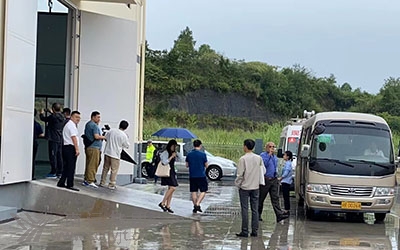 中外嘉賓乘坐南運(yùn)集團(tuán)考斯特