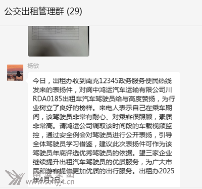 閬中鴻運的哥陳星吉服務耐心細致受點贊